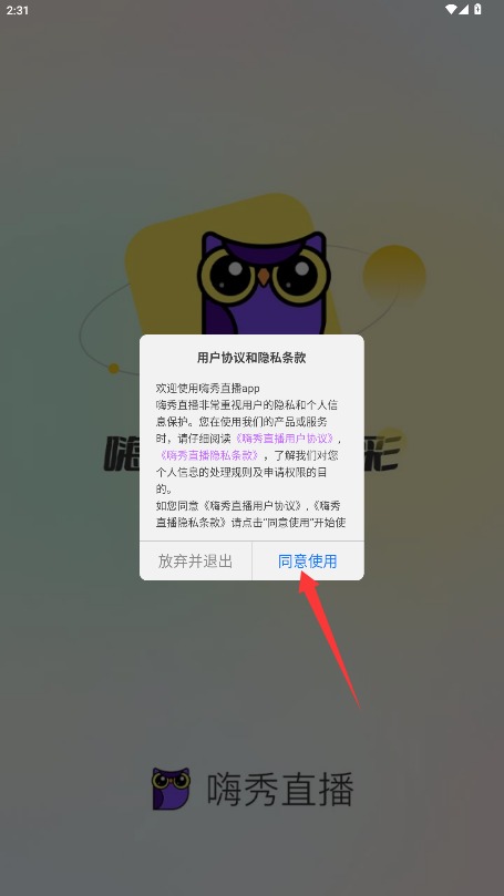 1. 首次使用时,需阅读平台服务条款及隐私政策,确认无误后点击“同意使用”按钮,方可进入应用。