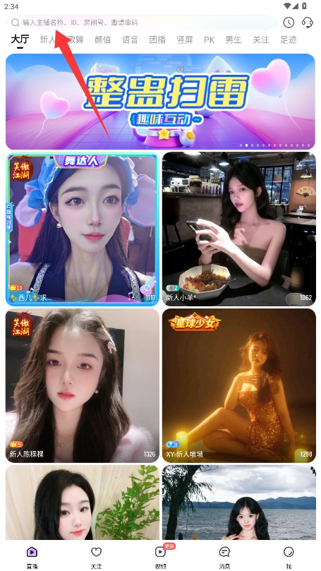 3、来到直播界面,既能浏览观看系统所推荐的直播,也能够通过输入主播名称、ID、房间号或者邀请码来进入观看。