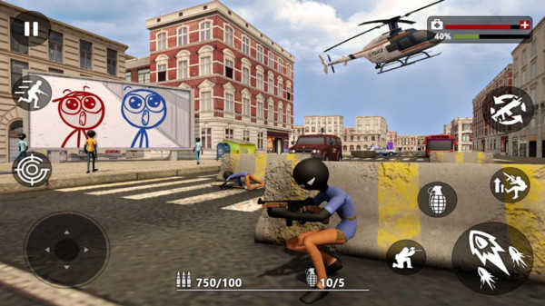 火柴人城市拯救是一款枪战射击类游戏。在游戏中,玩家将化身为火柴人,承担起保护城市、抵御敌人攻击的重任。游戏提供了丰富多样的武器道具,同时角色移动十分灵活,玩家可借此展开激烈战斗。其拥有十分逼真的3D地图,建筑也清晰可见。角色能在具有优势的地形中恢复血量,还能购买防具来增强自身防御力。玩家通过完成关卡,可以获取金币,这些金币可用于购置武器与装备。这款游戏围绕城市拯救这一主题展开,玩家需巧妙运用战术,藏身于物体或建筑之中,从而击败敌人。