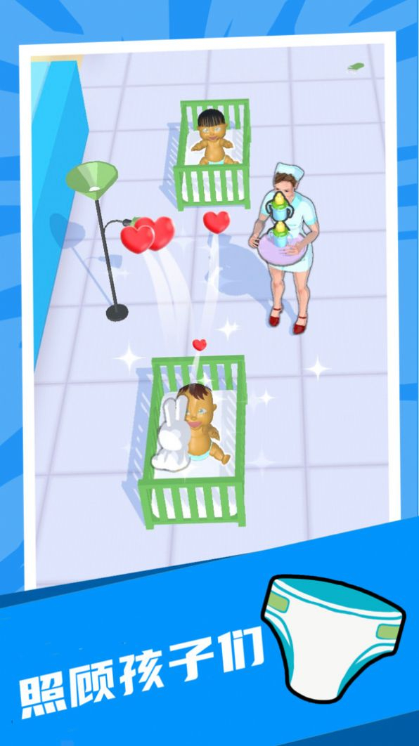 这是一款围绕托儿所经营管理展开的游戏,玩家负责运营一家托儿所,里面配备了各式各样针对婴儿的服务项目以及丰富的玩具。