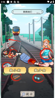 请依次点击狗铃铛、狗肚子、正在喝奶的狗娃、位于后面的小狗、手机、眼镜、女孩以及女孩受伤的腿。接着,向右滑动书包并点击里面的录取通知书,再向右滑动树叶并点击出现的照片。注意,最后出现的两个选项都不要选择,而是点击红绿灯,如此火车便会停下来。