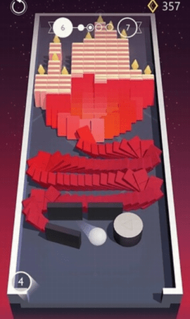 2. 多米诺粉碎时的空间画面栩栩如生、具体入微,不同难度的关卡设计精妙,充满了挑战乐趣。