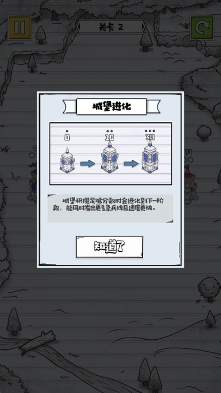 5、城堡进化:积攒到足够分数会进化,能同时发出更多兵线,占领速度更快
