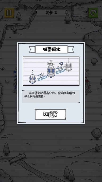 6、进化高级:当城堡到达高分时,会将接收的火柴人士兵派发出去