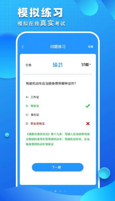 2、在线考试,不仅可以在线练习而且可以随时在线考试检验成绩。