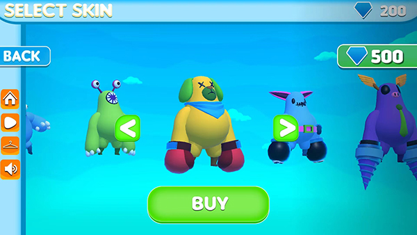 除此之外,Animals Party还加入了装扮元素,不仅为玩家提供了个性的头饰、夸张的表情、新奇的衣服为还提供了拳击狗、轮滑鸽、电钻鸟、绿嘴怪等角色,玩家可以通过比赛结束后获得的钻石奖励,可以用来换取自己喜欢的装扮和小动物,感兴趣的玩家可千万不要错过了。