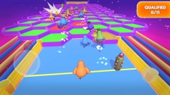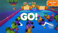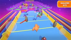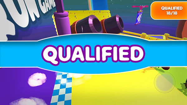 4、倒计时结束,快速往前方终点奔跑,右上角显示【QUALIFIED 20】,代表本局前20名到达终点的选手可以进入下一局比赛,
