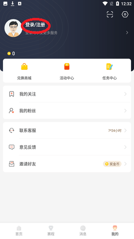 1、在本页面点击下载该软件,进入APP,点击“我的”,再点击上方登录注册;