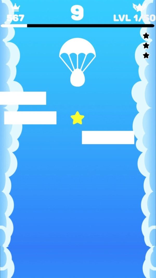 2、界面简洁,画风小清新,营造出整个游戏轻松的氛围。你需要守护好蛋,在下落期间收集一些星星来提升积分。