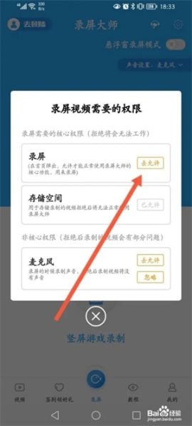 然后点击录屏的去允许。