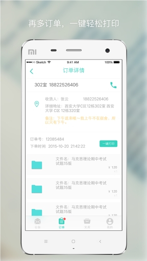 5.远程打印-即使不在寝室,也可以完成订单的打印。