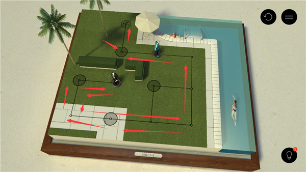 2、其主要玩法同样是益智类型。在棋盘既定路线的规则下,移动杀手以达成任务。任务有时是抵达特定地点,有时则是暗杀特定目标。