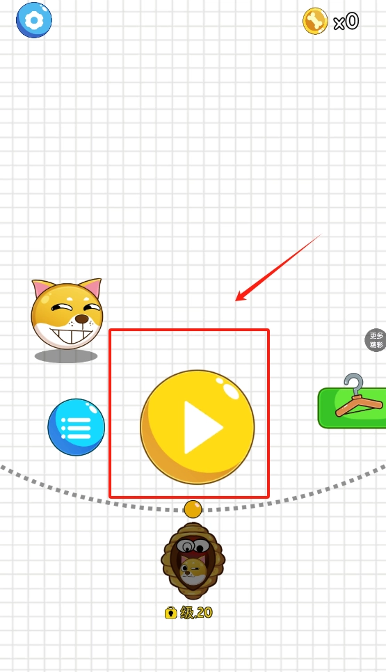 1. 轻点蓝色齿轮来设定游戏参数,查看金币等级,而后点击黄色播放键开启游戏。