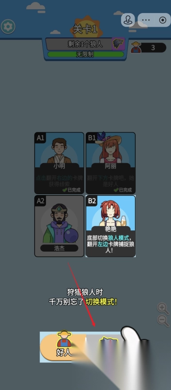 夜幕降临,请闭上双眼,狼人请睁眼!《我要过这关》这款游戏运用了经典的狼人杀玩法,玩家需凭借出色的观察力与强大的逻辑能力,进行合理分析,从而成功找出隐匿其中的狼人,助力人类阵营取得胜利。游戏精心设置了丰富多样的关卡,每场开局,你都将面临数量各异的狼人与独特的剧情对话,极大地提升了游戏的挑战性。整个游戏过程充满了扣人心弦的情节,你是否有信心成功存活下来呢?