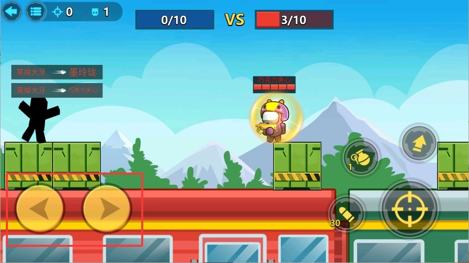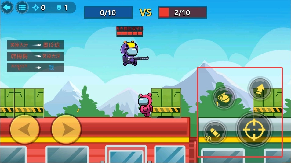 2、左手控制移动摇杆调整走位,利用太空舱内高低地形进行掩护,保持移动避免成为固定靶。
