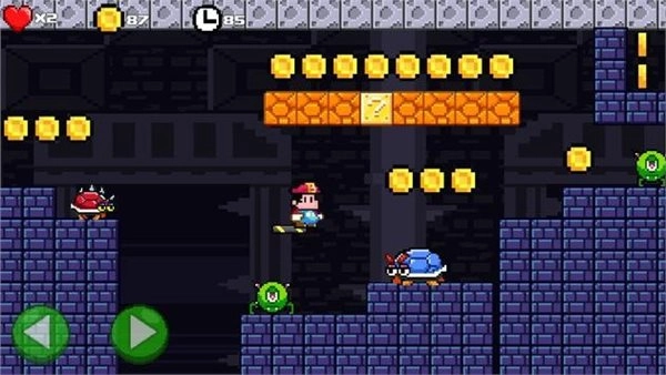 这是一款采用像素元素设计风格的游戏,当你踏入游戏,便会留意到大量卡通风格的呈现。在游戏里,你将扮演一名水管工造型的角色,于山河大海、高山丛林等各式各样的场景间穿梭。你需要操控这个角色,一路过关斩将,打败怪物,获取胜利。只有在抵达终点之际,才能收获高分。感兴趣的小伙伴不妨选择这款游戏。