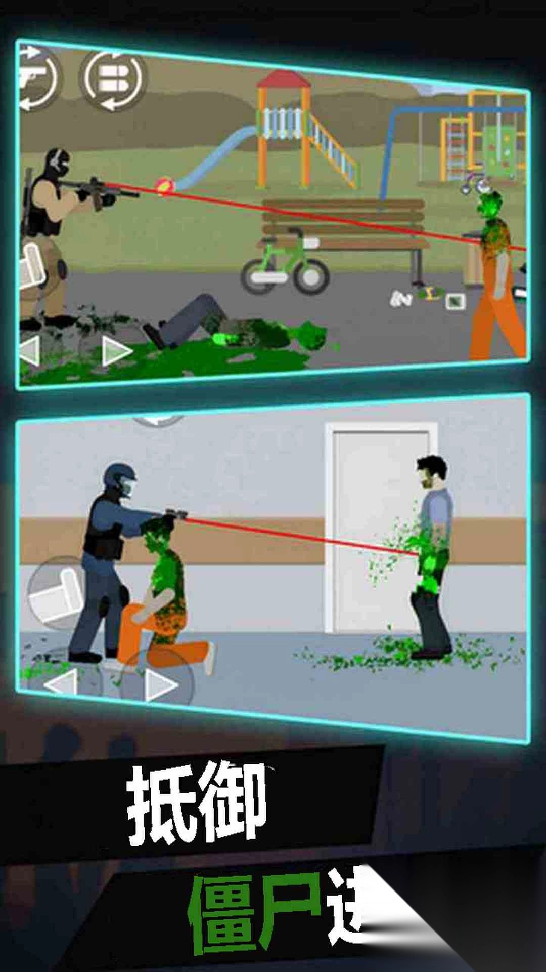 1. 大批僵尸即将发动进攻,玩家需全力以赴展开抵抗,迅速朝着僵尸的弱点射击,将所有僵尸消灭殆尽,从而成功存活下来。