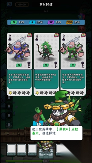 2、游戏开局时,你会看到三张卡牌可供挑选,此时要选择点数最大的那张。