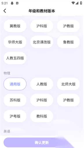 4、接下来选择教材,点击自己所使用的教材,例如点击通用版。