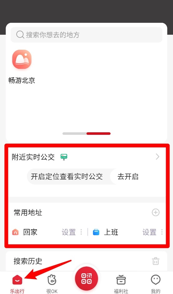 2、在“乐出行”页面下方可添加常用地址,如回家、上班,方便快速查看对应线路与实时公交信息。