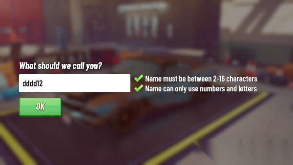 3、起一个 2 到 16 字节的英文或数字游戏名字。