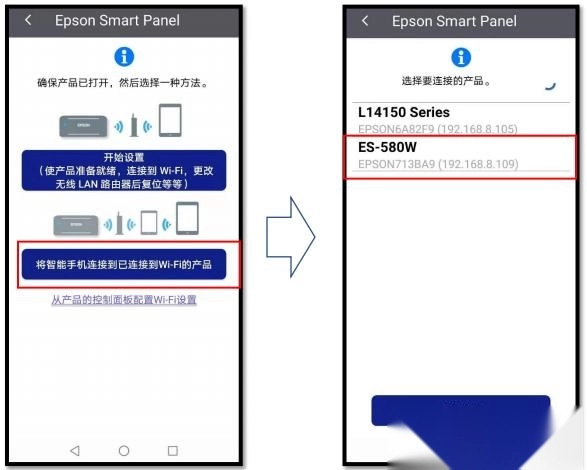 Step2:将手机连接至跟扫描仪同一个 Wi-Fi(无线局域网)后,打开 Epson Smart Panel。