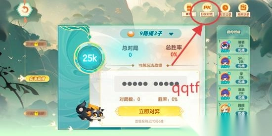 在真人对弈界面点击右上角的好友对战功能。