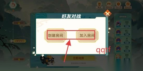 在弹窗当中点击创建房间或者加入房间来邀请好友对战。