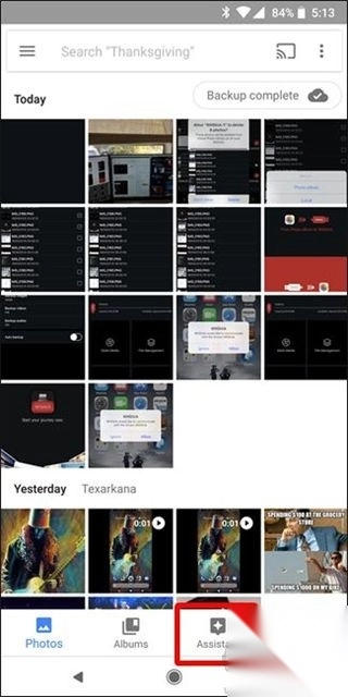 1. 开启谷歌相册,轻点底部的“助理”按钮,此时顶部会呈现出相册、电影、动画等主要选项。