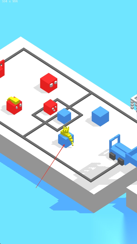 2、在关卡里,会出现像移动挡板、旋转风扇之类的障碍。此时,玩家需要预先判断方块的飞行轨迹,借助多次弹射或者绕开障碍等办法,来保证方块能够顺利地进入篮筐。