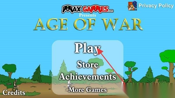 1. 在游戏启动界面,会展示“Age of War”字样,同时设有“Play”(即开始游戏)、“Store”(也就是商店)等选项,该界面由“MAX GAMES”呈现。