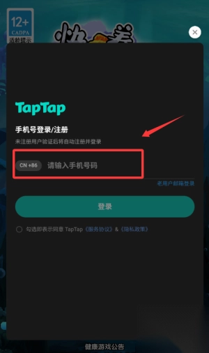 2、输入手机号并勾选协议,点击绿色登录按钮完成注册。