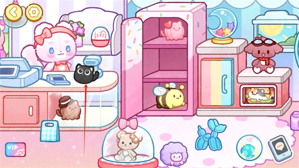4、玩家能够自由摆放场景中的物件,就像这只黑色小猫咪,能将它从柜子里挪到收银台上。