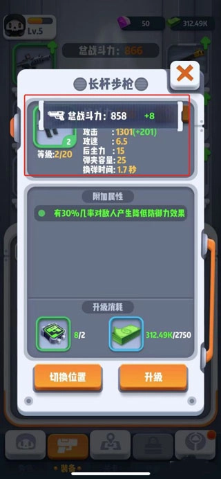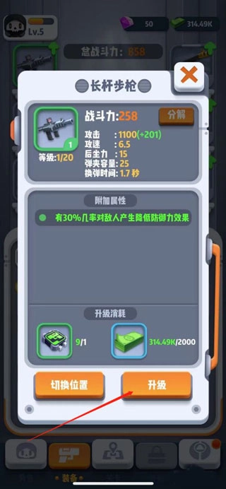 4、点击升级之后,武器就升级成功了