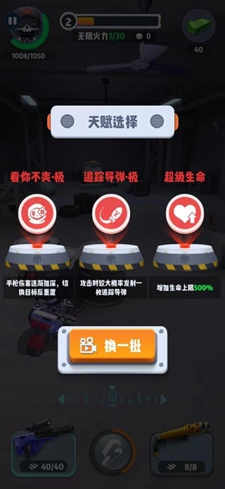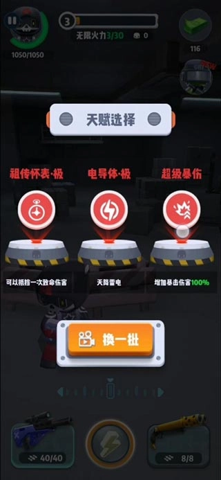 可以说,选择这两条天赋后,配合其余增加伤害增加暴击的天赋,无限火力基本可以速推,没什么难度可言,即便不选择增加血量的天赋,全伤害天赋也可以做到快速打通关卡。
