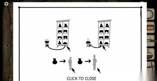 2、将柜子上的图案和台子上的图案拼在一起,将最后得到的绿瓶子递给旁边的人。