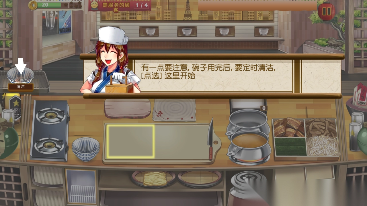 6、使用过的碗你需要点击清洗,不然就没碗用了。