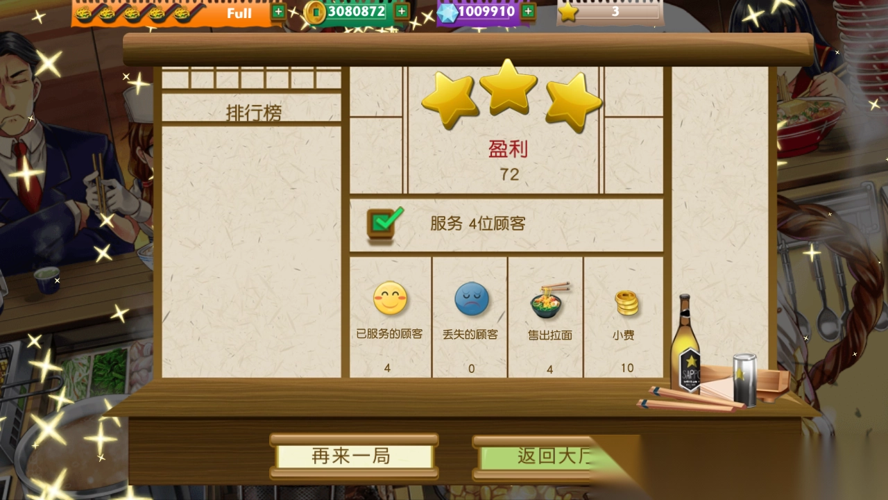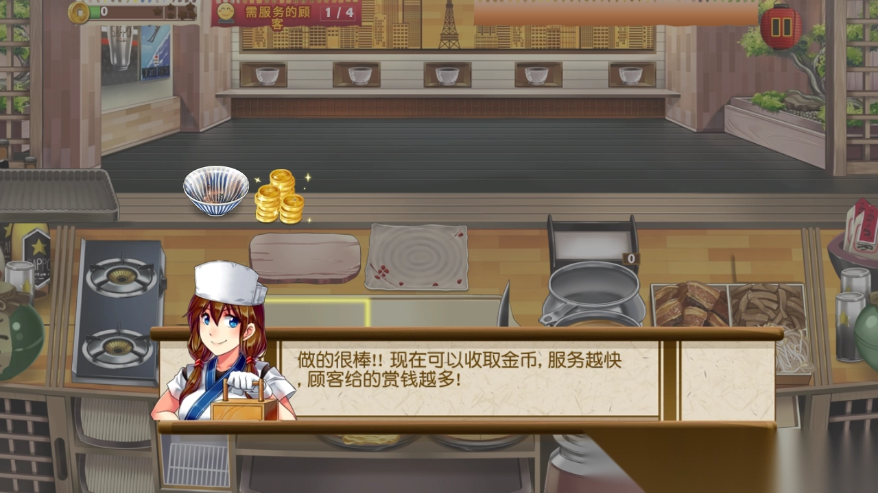 5、顾客吃完拉面会留下金币,你需要及时收取。