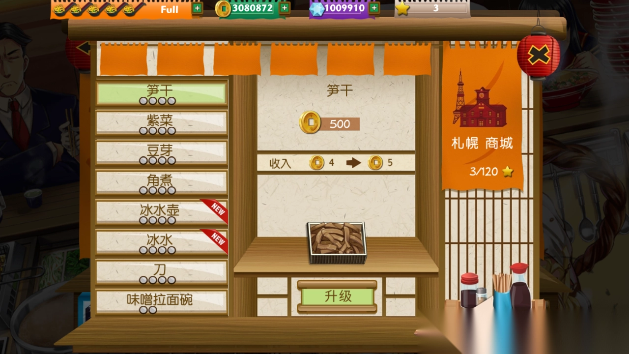 为了把店铺经营得红红火火,玩家需借助商店,对食材、碗、水予以升级,以此提高店铺收益、提升店铺评级,并通过多样化的方式吸引顾客,全力以赴将店铺发展壮大。