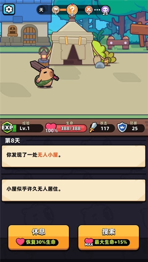 卡皮巴拉go国际服官方正版(capybara安装器)是一款充满萌趣的文字冒险类游戏,其主角为可爱的卡皮巴拉。玩家仅需轻点屏幕,便能开启各式各样的挑战。在这款游戏里,冒险任务丰富多元,趣味挑战接连不断,同时还有诸多新奇事件,为玩家带来别样的冒险感受。玩家在冒险过程中,需要提升自身的属性,以此助力卡皮巴拉应对各类状况。