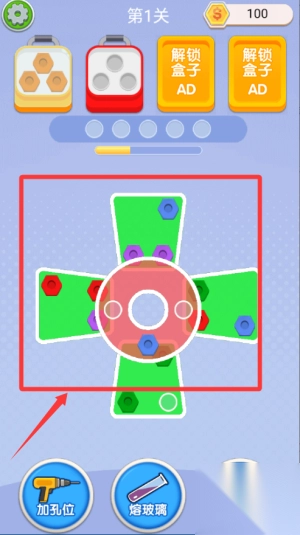 1. 进入关卡后,首先对整体结构进行观察,明确螺丝钉所处位置以及其连接方式。