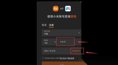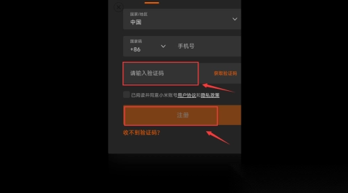 3、勾选用户协议后填写验证码,点击橙色注册按钮完成。