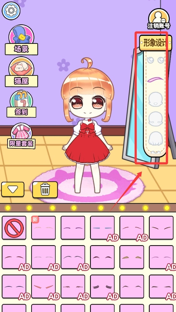 4、点击红色框框的形象设计选择发型。