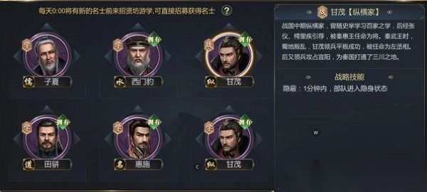 合理利用战略名士技能,让部队更好的去征战吧!