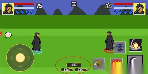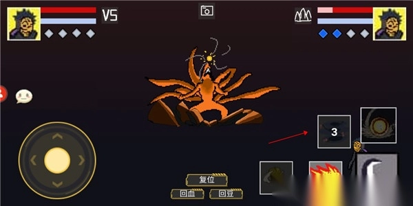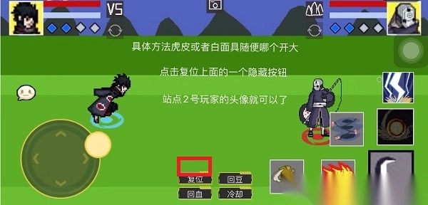 2、接着在释放大招的过程,点击其中的【复位】上方的隐藏按钮,可能会有点卡;