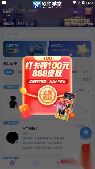 4、进入软件后,即可在组队大厅寻找语音室加入,与朋友们一起开黑畅玩