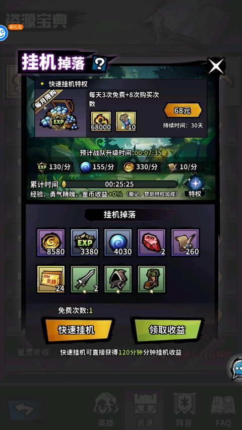 1、无论是战役挂机还是快速挂机,都可获取火柴。每日有一次免费挂机机会,其余皆需通过积累获得。