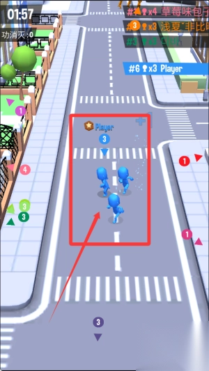 1、基础玩法是通过滑动屏幕控制自己的队伍移动,沿途吞噬行人和其他小队伍来逐步壮大自己的势力范围。