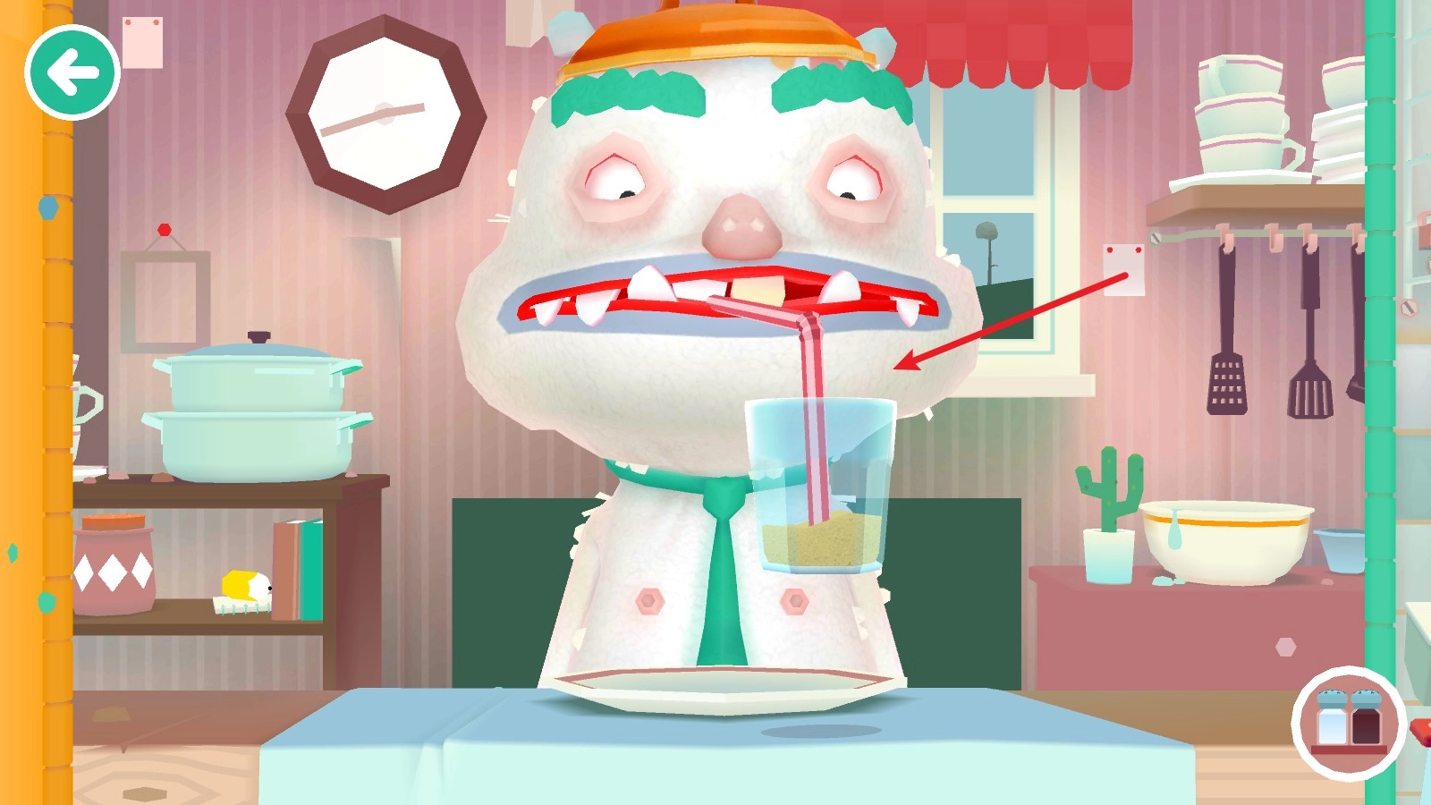 5、将果汁移动到角色嘴边就能够进行品尝了。