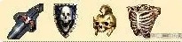 黑魔剑,亡灵盾,骷髅冠,骨质胸甲